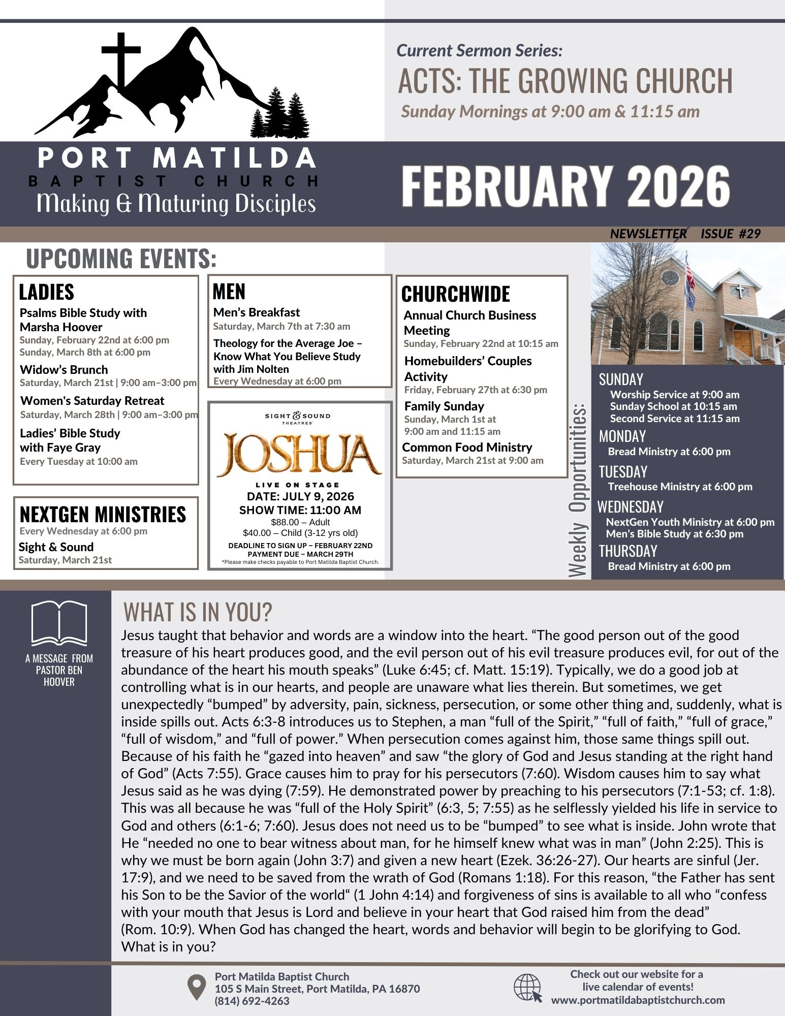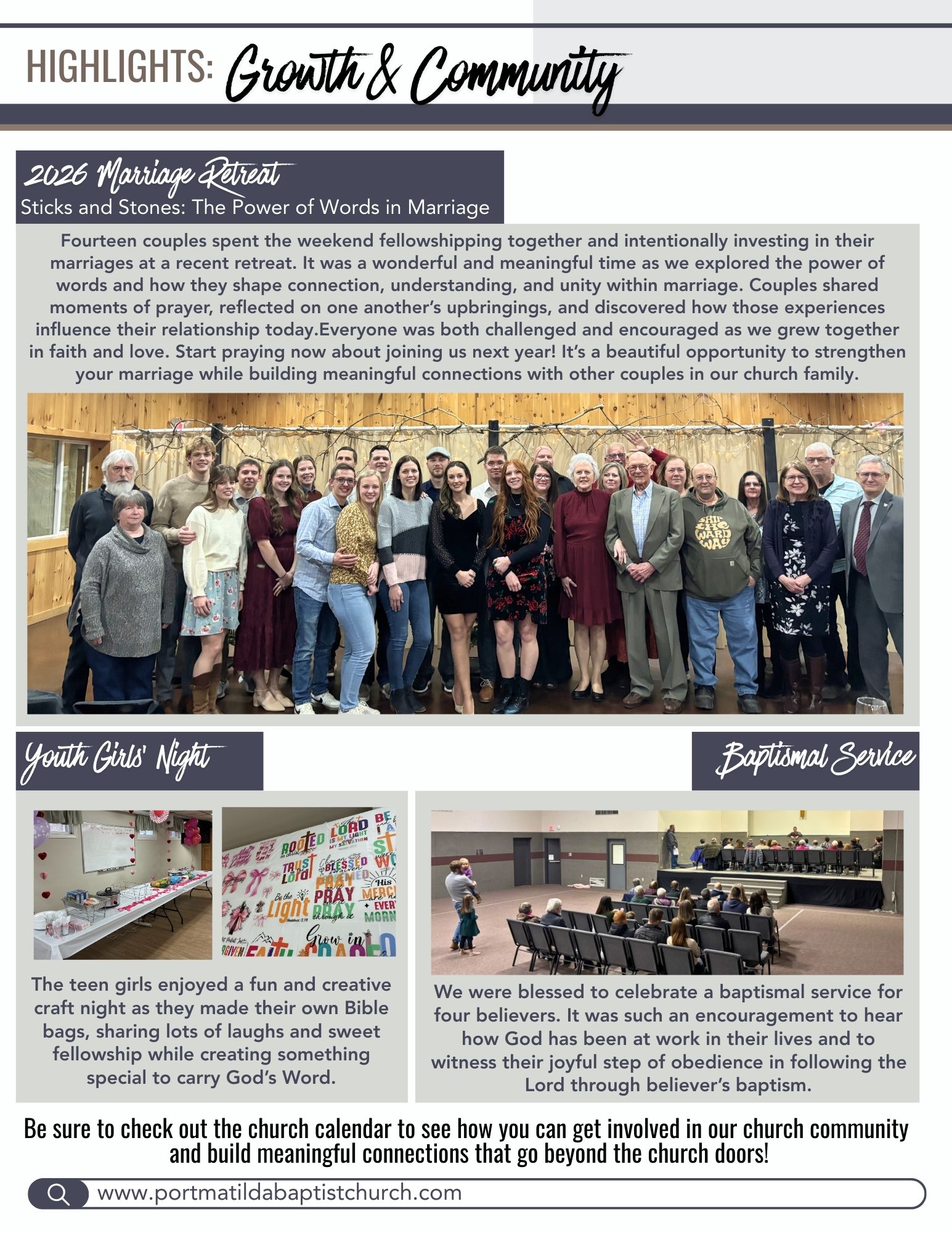 Events are planned throughout the year to bring the entire church family together and reach the community. Some of these activities include Vacation Bible School, fall festival, sportsman's activities and more!